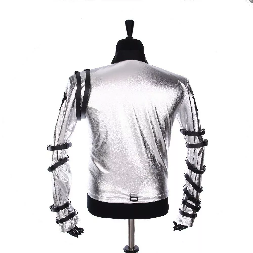 Attention all Michael Jackson fans and impersonators! Embrace the iconic style of the King of Pop with this Punk MJ Michael Jackson Classic BAD Tour Silver Shine Bodysuit Jacket. Crafted from 100% silver spandex fabric, this jacket is a faithful reproduction of the costume worn by Michael Jackson during his legendary Bad World Tour from 1987 to 1989.