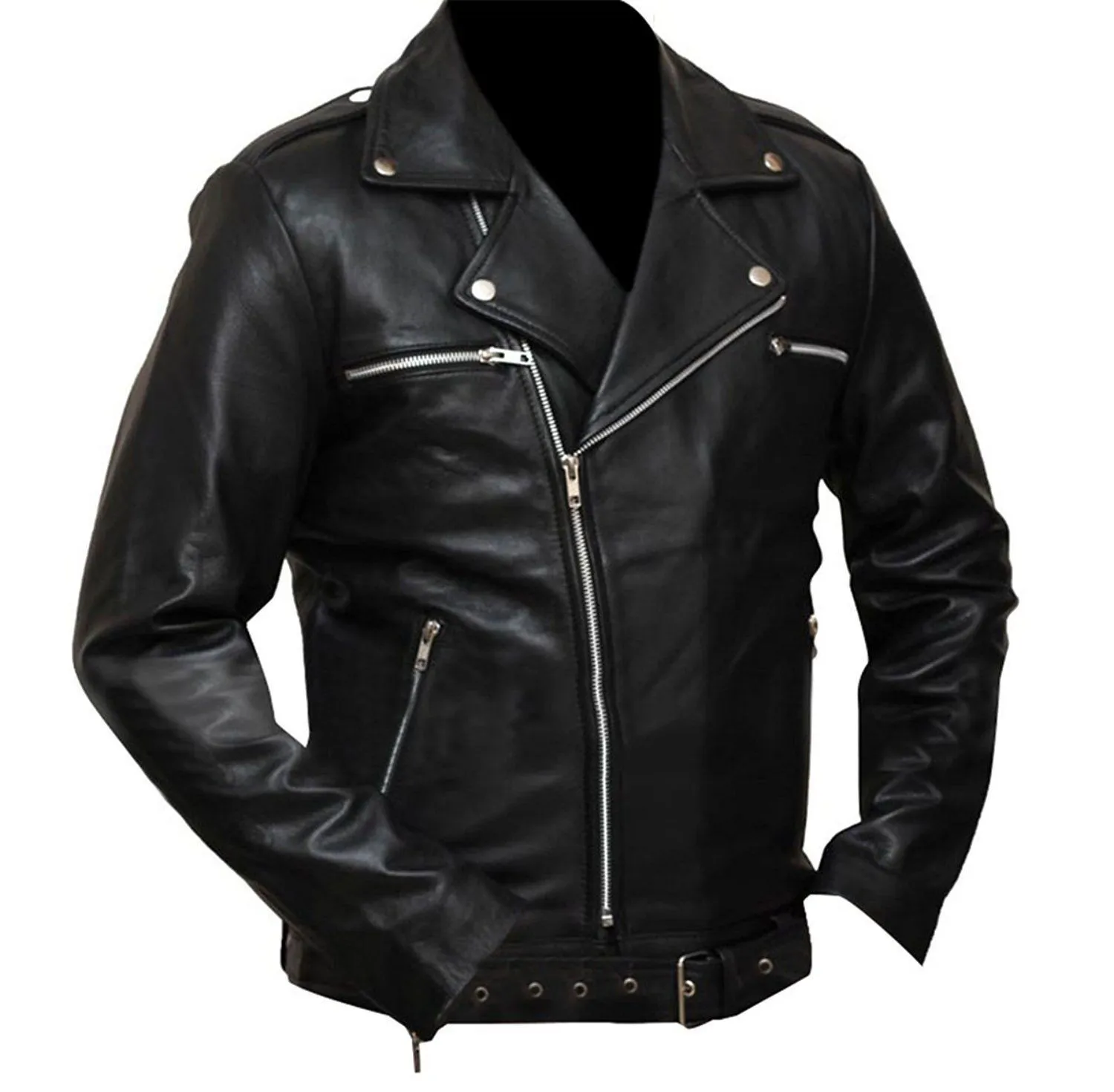 Embrace the fierce and rugged style of Negan from “The Walking Dead” with this Jeffrey Dean Morgan Black cowhide Jacket. Crafted from excellent quality real cowhide, this jacket captures the iconic look of one of TV’s most infamous characters. Perfect for both motorcycle enthusiasts and fans of the show, this jacket combines functionality with striking design elements.